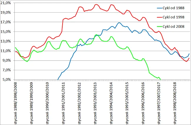 Porównanie bezrobocia w różnych dziedzinach studiów